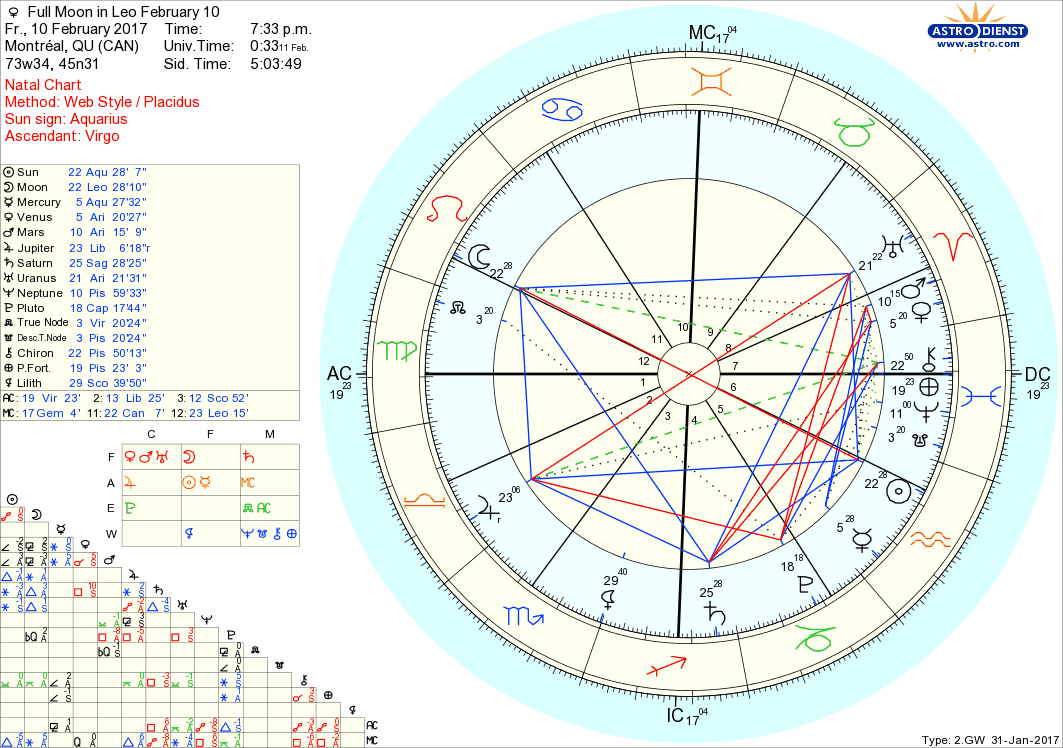 Look at the Leo Moon sitting there all alone ! It is supported by the trine of Saturn and Uranus in Fire signs so it seems as if it can do as it pleases and stand far away fro the crowd if needed. The other side of this chart shows a cluster of planets - some squares and some sextiles that look as if they are competing or vying for attention in different directions. Venus, Mars and Uranus in Aries squaring Pluto in Capricorn is never an easy dynamic. Once again it can be volatile and competitive, power tripping and aggressive. Jupiter in Libra is also opposing Uranus and squaring Pluto - once again aspects we've been continually dealing with for years.. since 2011 in some form... the Cardinal signs in opposition, uprisings, protests, big upheavals, etc. My overall feeling for this full moon though is one of deciding where you stand, and perhaps detachign yourself from the energy of conflict. Tryign to find safe ground and gain strength before engaging.