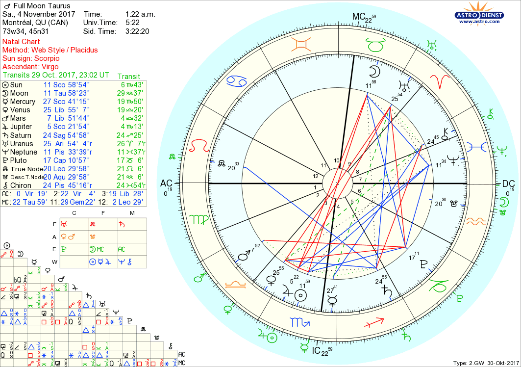 What strikes me with this Full Moon chart is a sense that we need to be careful of acting on our impulses and reactions right away. Yes, that's normal advice for any situation, but I am saying to exercise more caution under this full moon because the potential to do something rash and regret it is a higher. The key words in the Sabian symbol are nurturing yourself, so this is the antidote or answer to anything stressful that may crop up during this full moon. When Taurus and Scorpio planets oppose we can feel the strong vibrations and stubbornness that both signs have. We can have a wonderful or magical time, or we can have a war zone. It will be our choice how to react - so think of ways to rest and self nurture.