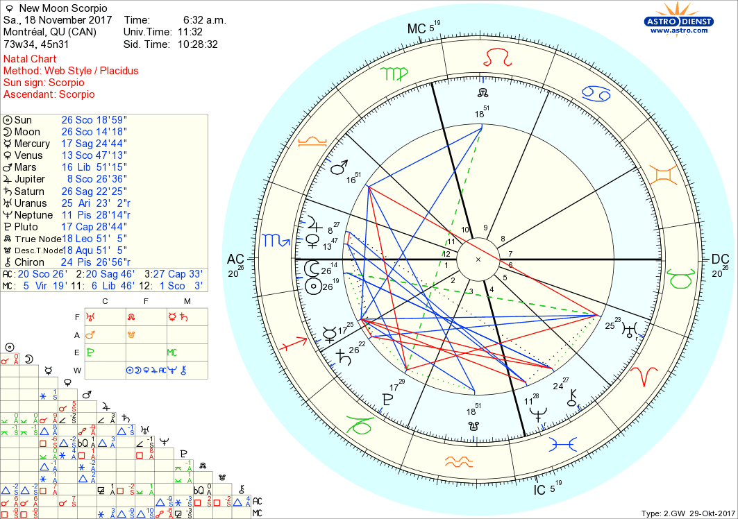 The New Moon falls at 26' Scorpio